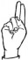 На ћирилици написано ВУКОСАВ ПЕЈЧИНОВИЋ састоји се из 17 слова [?]. Исписано ћириличном једноручном азбуком за глувонеме:
